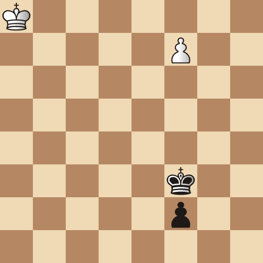 While the Queen is the toast of all beginner players the diagrammed position represents a low blow to her majesty. If White begins with: 1.f8=Q+ Kg2, Black achieves an immediate draw. In fact, in such endings where the defending King escorts a passed pawn to the seventh or second ranks, the Queen has a terrible time against the a, c, f and h-pawns. In Seirawan Chess, the diagram represents a simple win for White. In fact, remarkably enough, White's King isn't needed at all as White forces the win of Black's pawn.