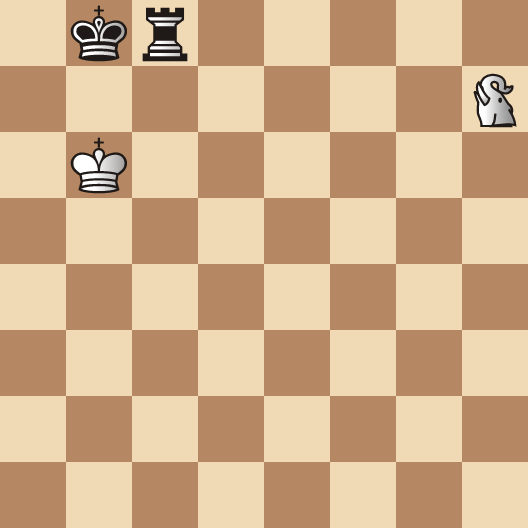 Hence, White's only problem is how to meet: 1…Rg8!, the only "safe square" for Black's Rook. Once more it is that deceptive "retreating" move which is the key to White's victory: 1.Ed7+ (1.Eb7+ is equally good) 1…Kc8 2.Ea7+ Kb8 (A forced return. Otherwise, 2…Kd8 3.Ea8+ skewers the Rook.) 3.Ea6+!, the winning move: 3…Kc8 4.Ea8+, wins Black's Rook.